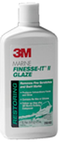 MARINE FINESSE-IT II GLAZE MATERIAL polish is designed to remove minor scratches and light oxidation while producing a high-gloss "wet look" finish on fiberglass and painted boats. Product contains no wax or silicone. It is also the recommended step after using 3M Marine super duty rubbing compound.For best results,use by machine.